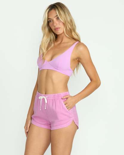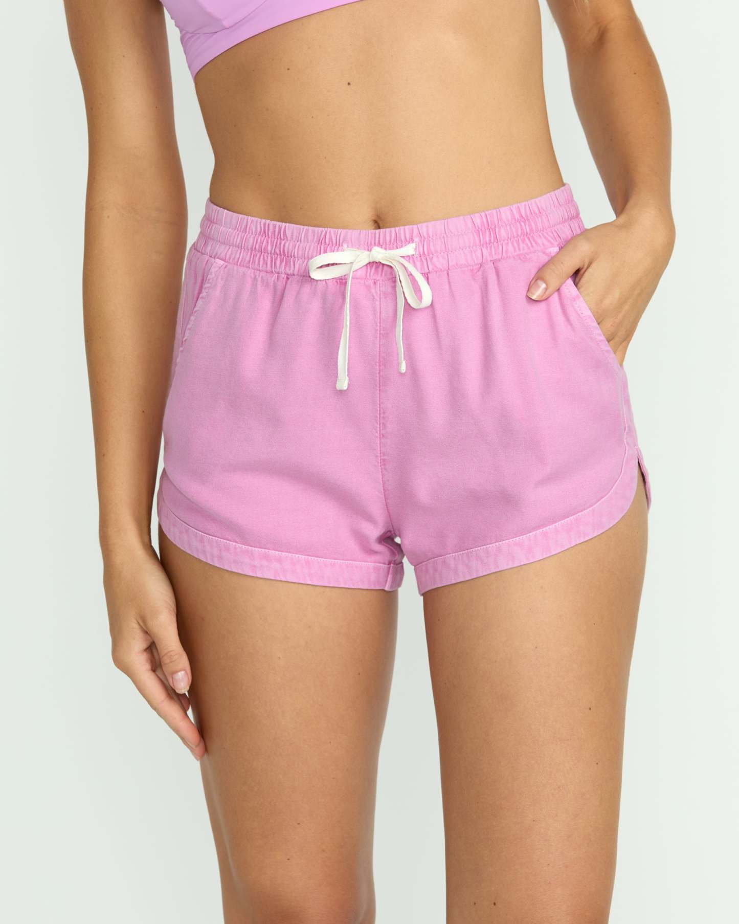 Road Trippin Elastic Waist Shorts - Bright Rose