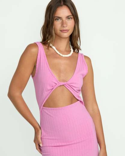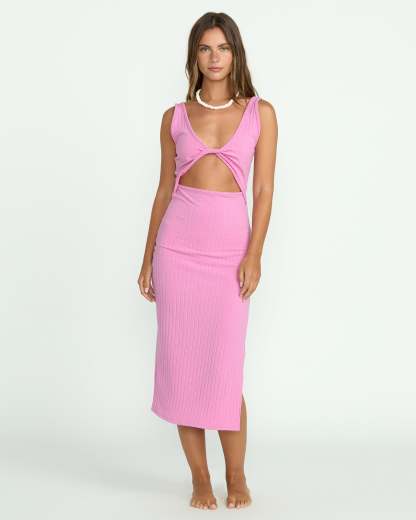 Our knit Take A Look dress stuns with a versatile, reversible front-to-back twist detail and keyhole opening—wear cut-out on the front or back to suit your mood. Stretchy ribbed material and midi length keep you effortlessly stylish.