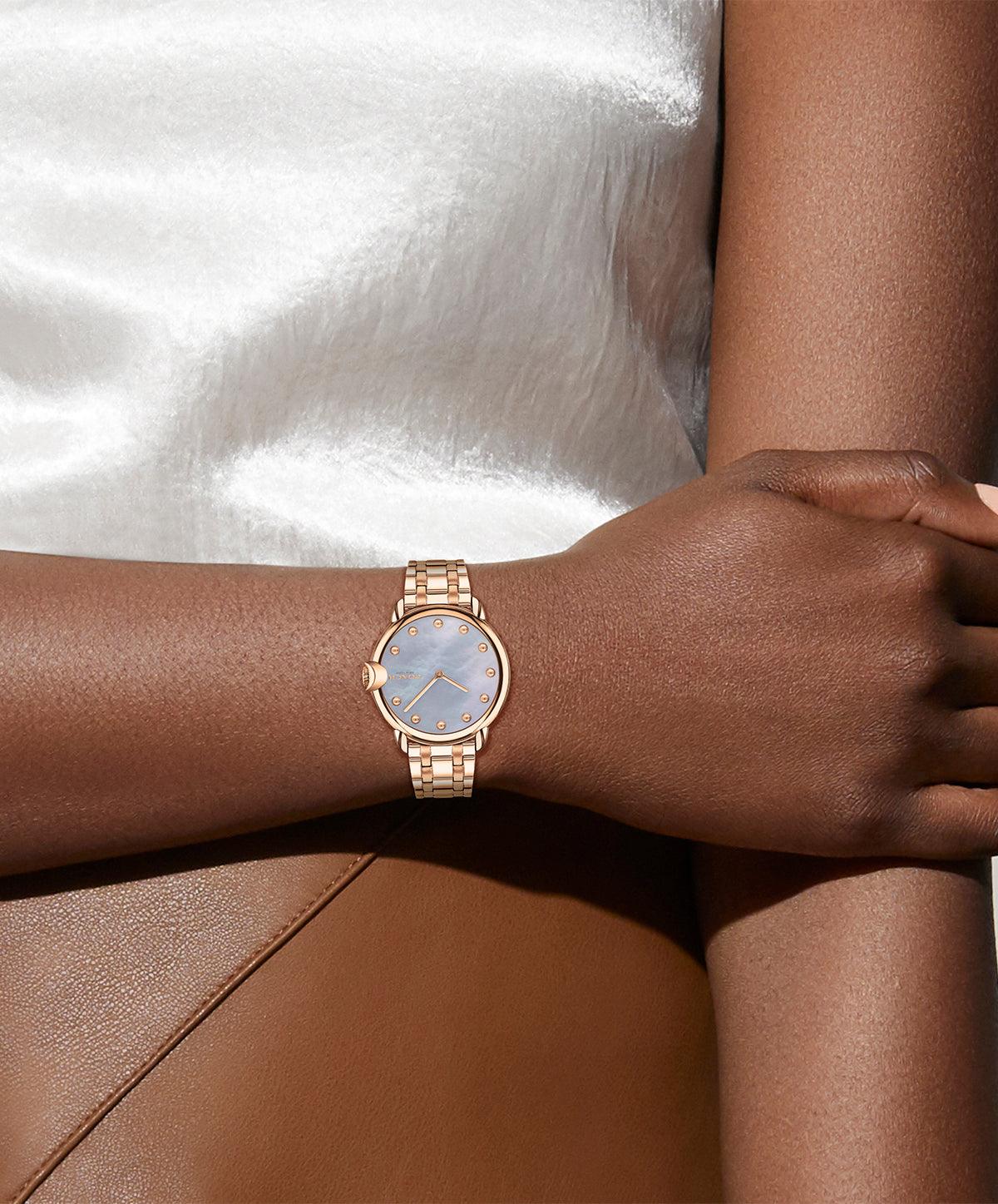 Refined And Modern, The Arden Watch Is A Minimalist, Go-With-Everything Style. Finished With A Dimensional Coach Signature Crown, This Rose Gold Tone Bracelet Design Features A Mother-Of-Pearl Dial And Pearlized Markers.,