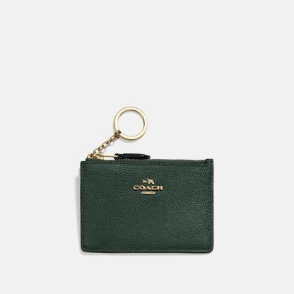 | Features | Crossgrain leather Credit card slot and ID window Zip-top closure, fabric lining Attached split key ring Packaged in a Coach gift box |