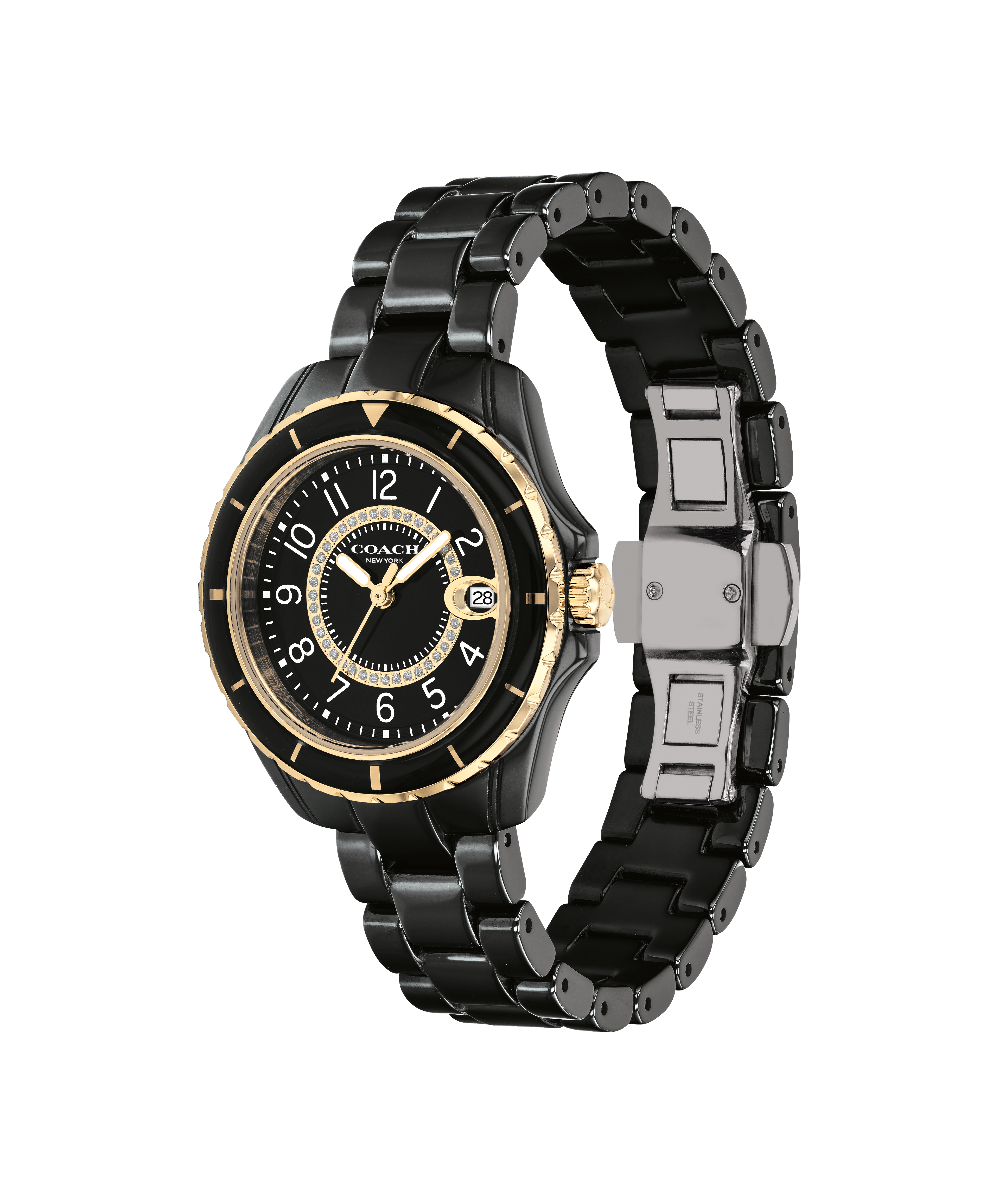 CASE MATERIAL: Black Ceramic & Ionic Plated Thin Gold 1 Steel