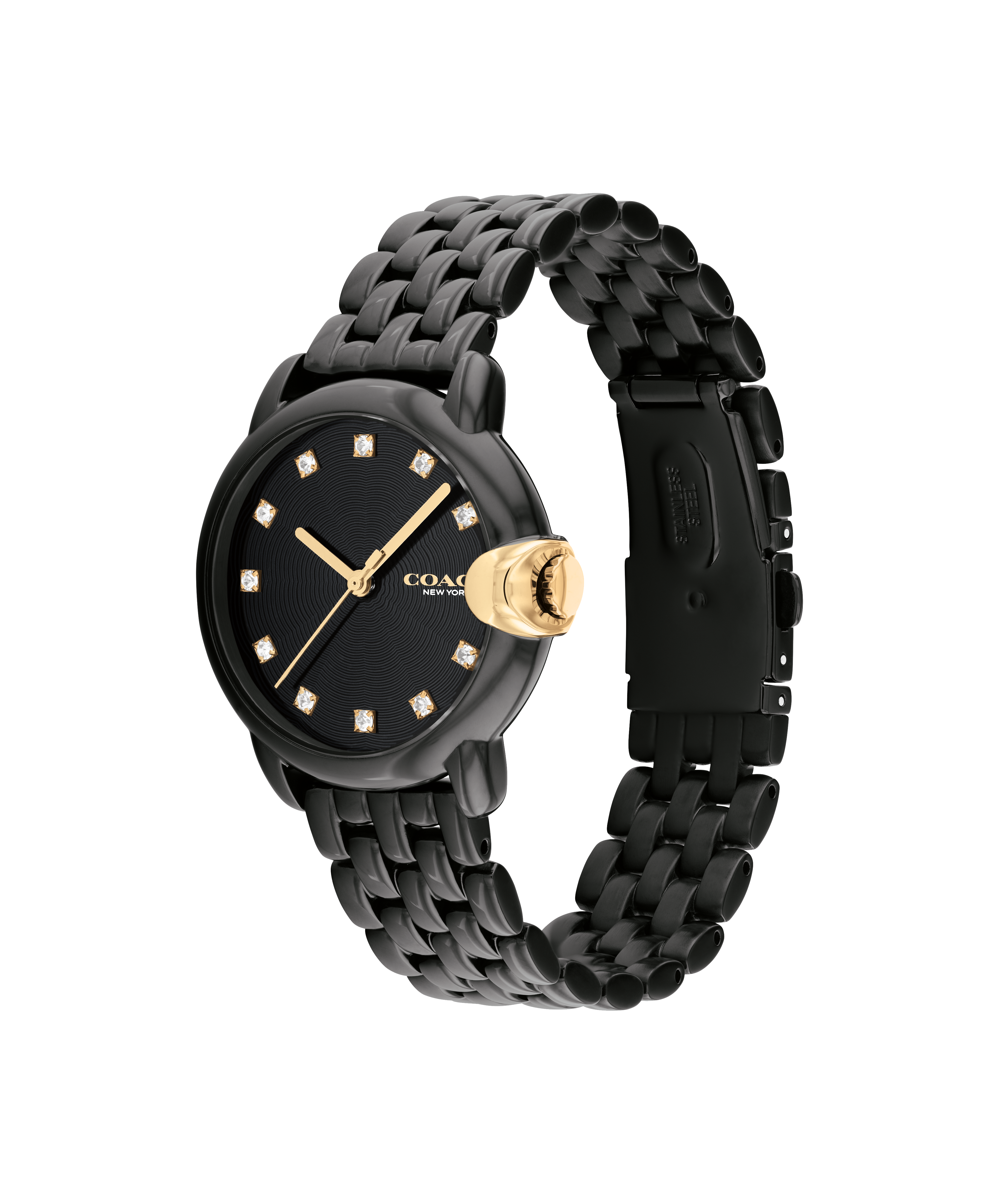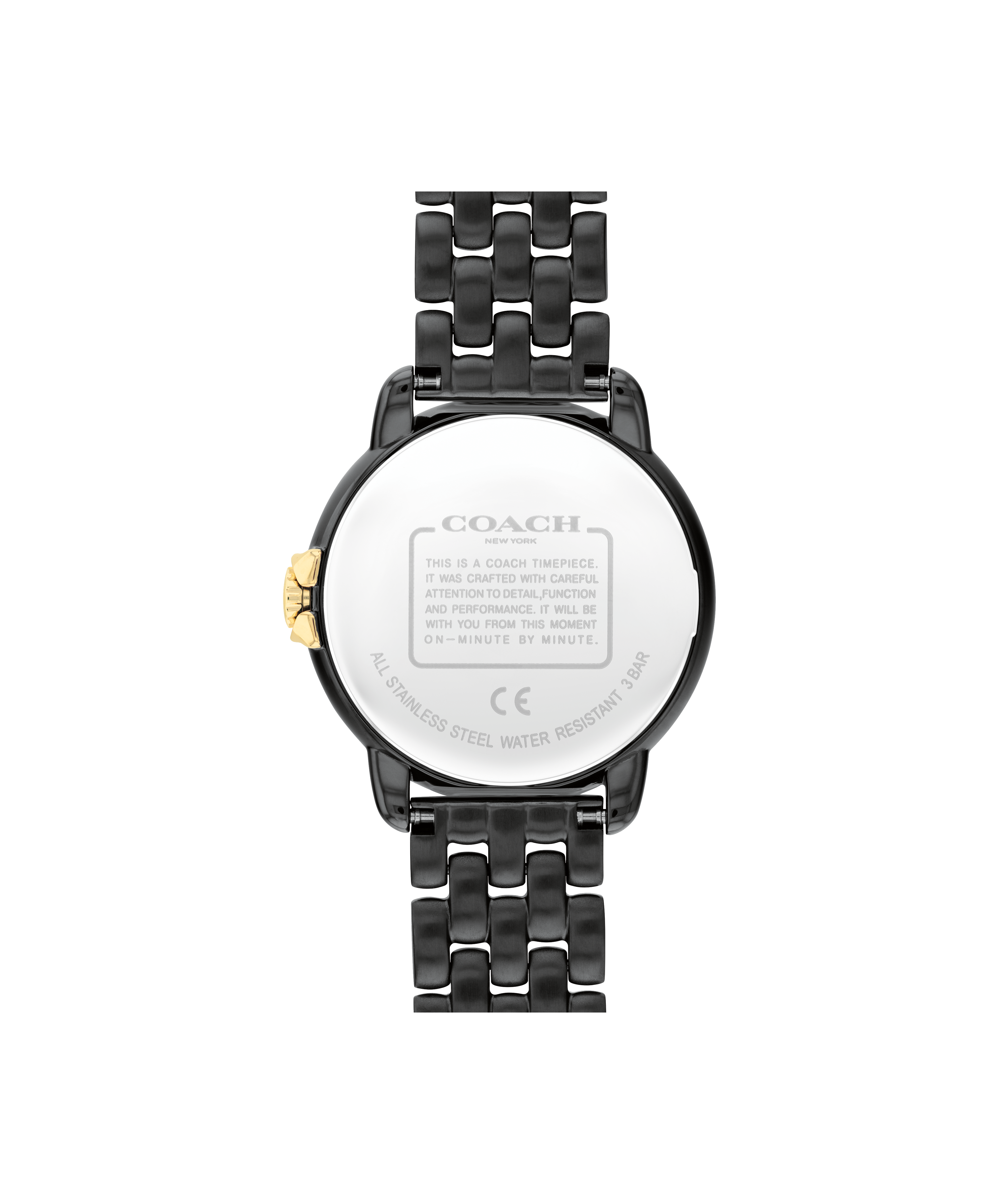 Refined And Modern, The Arden Watch Is A Minimalist, Go-With-Everything Style. Finished With A Gold Tone Coach Signature Crown, This Black Ionic Plated Bracelet Design Features A Black Guilloche Dial With Crystal Markers.