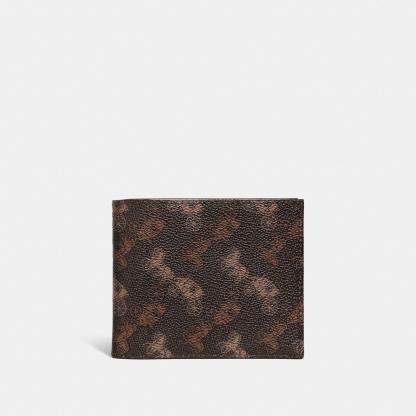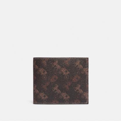 | Features | Printed coated canvas and soft polished pebble leather Eight credit card slots Full-length bill compartments |