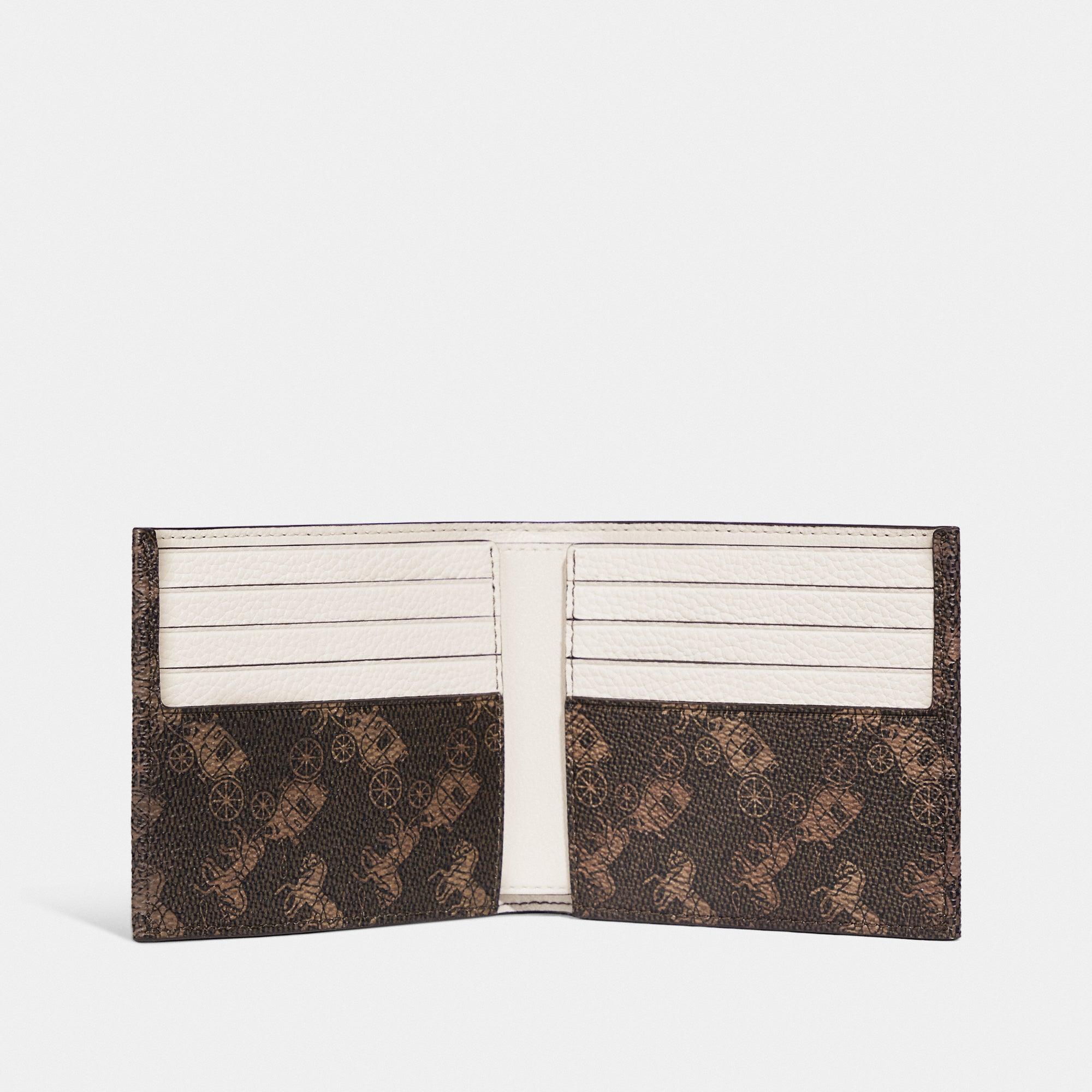 Crafted of polished pebble leather and sturdy coated canvas featuring our iconic Horse and Carriage motif, this traditional billfold slips easily into back pockets. It's designed with eight credit card slots and two full-length bill compartments.
