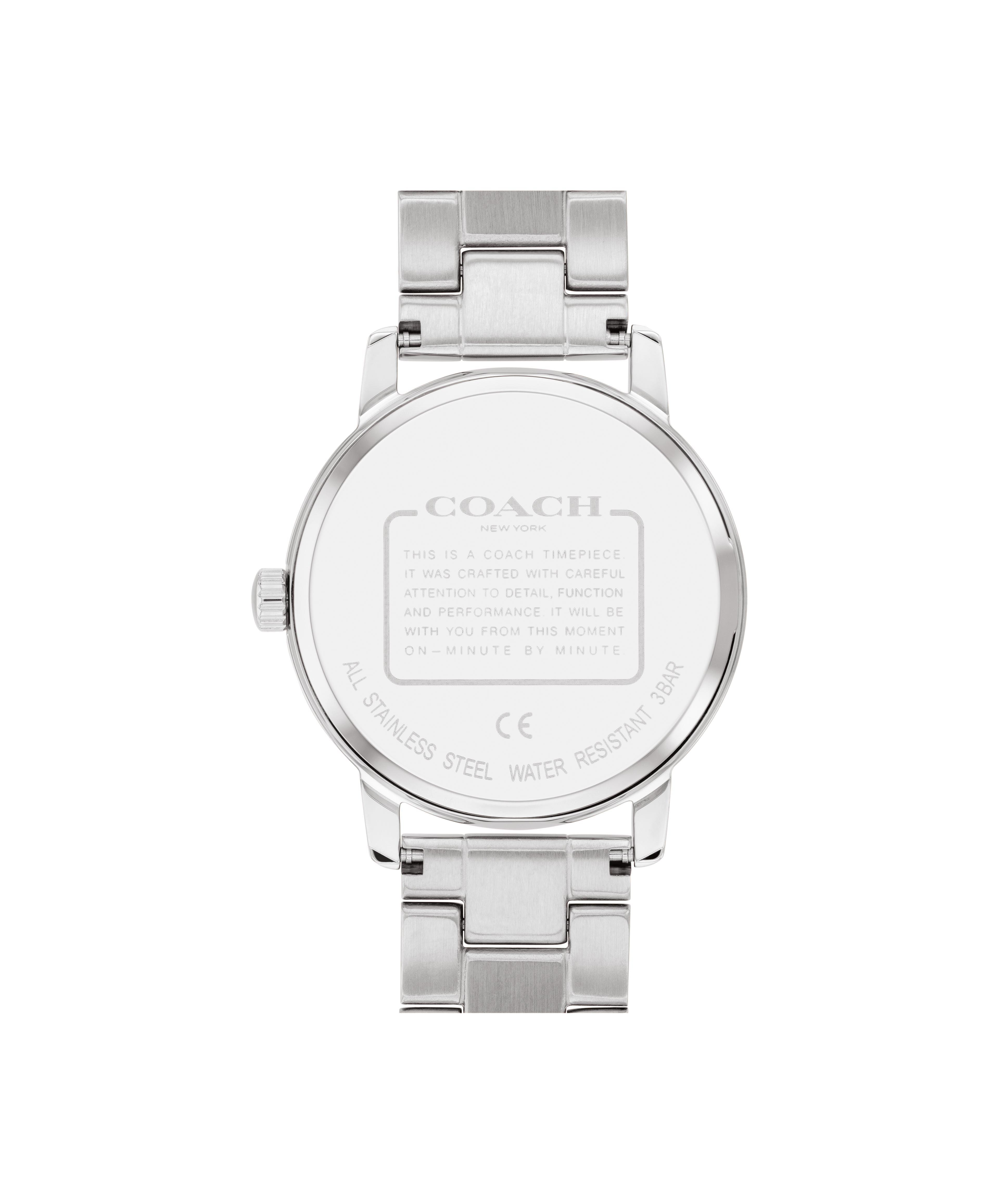 Coach Boyfriend stainless steel 34mm watch with silver white dial and purple silicone strap