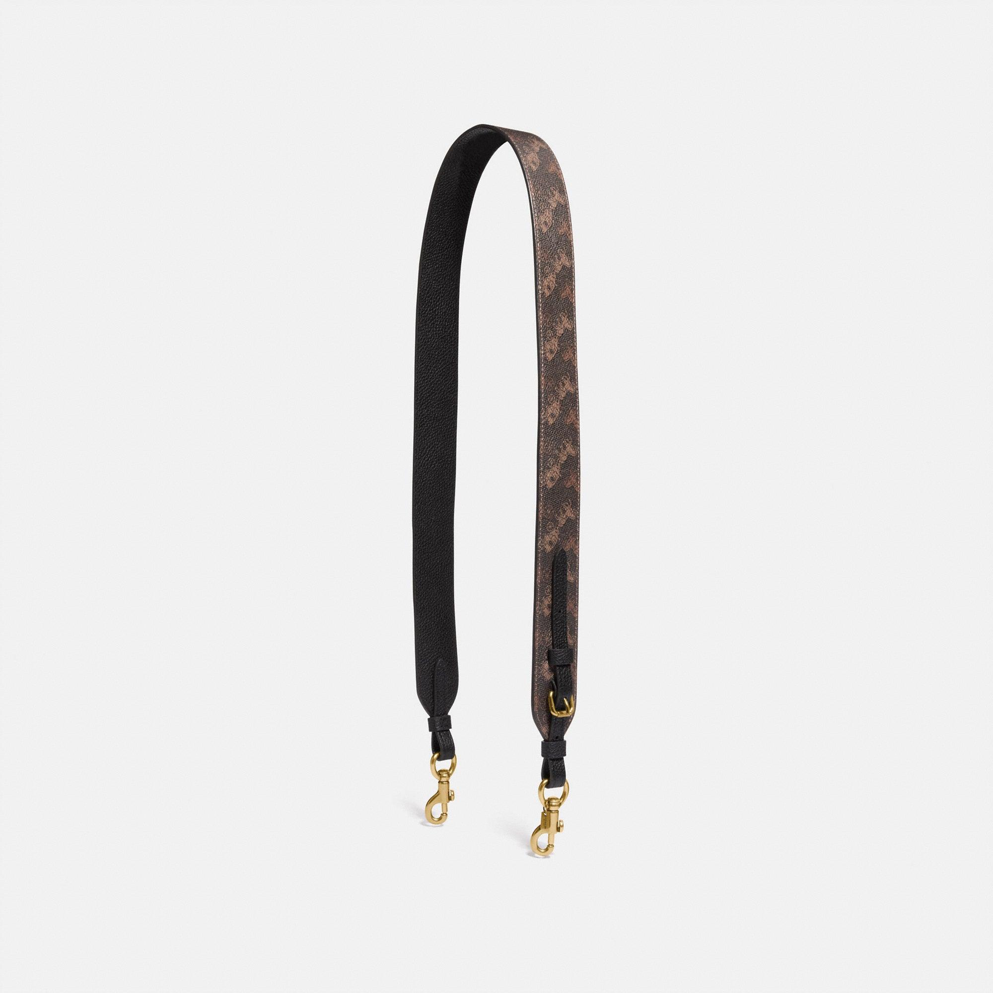 Instantly update your bag with this sturdy coated canvas strap featuring our iconic Horse and Carriage motif. Finished with polished pebble leather trim, the interchangeable style features two dogleash clips that allow you to attach it to our most popular styles.